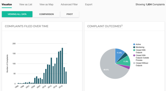Using the advanced filters, we dig through complaint data to get a sense of what the state of accountability in international finance looks like – from near and far.