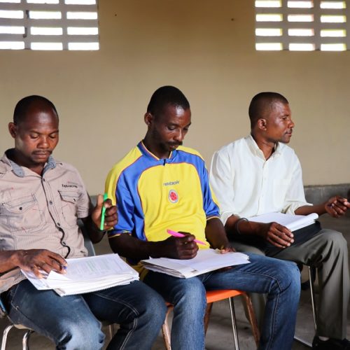Members of the Komite, during a training session with Accountability Counsel attorneys