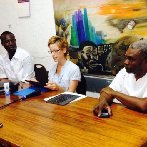 Press Conference about draft Haitian mining law, July 2014, Port-au-Prince. Photo by Ellie Happel