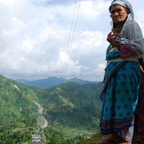 A Nepalese woman in Sindhuli District, Nepal overlooking the Khimti-Dhalkebar Transmission Line